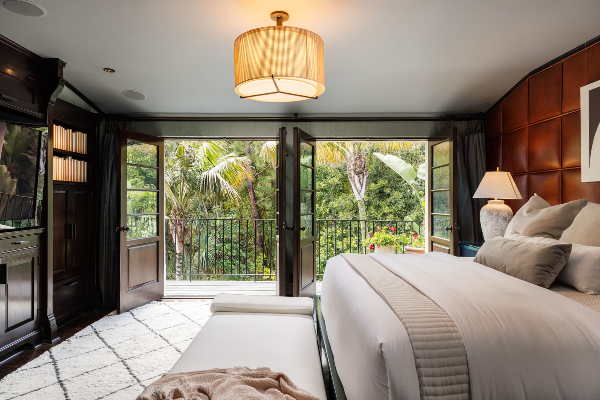 Located on a rare double lot in the desirable Outpost Estates enclave, the Jackson estate was originally acquired by Galecki in 2015 for $9.2 million. It was previously owned by Jason Statham and Rosie Huntington-Whitely, and before that by Ben Stiller, who enlisted design firm Roman and Williams to give the 1920s estate a comprehensive restoration and expansion. Another former owner is “La Bamba” actor Lou Diamond Phillips.