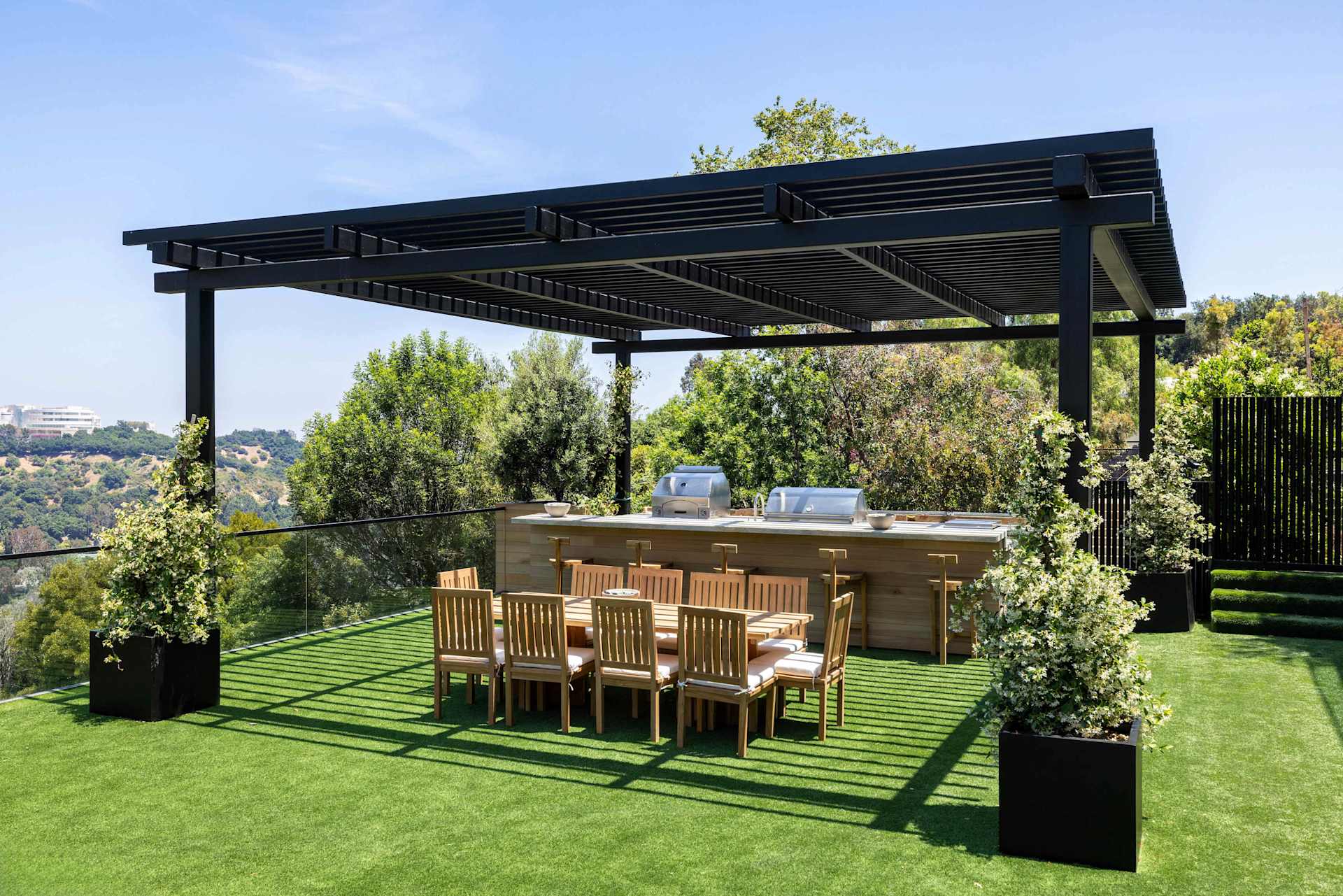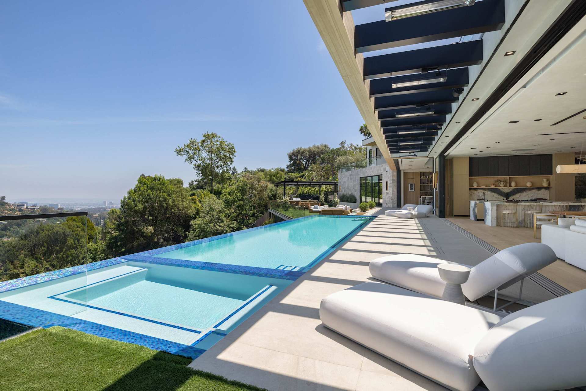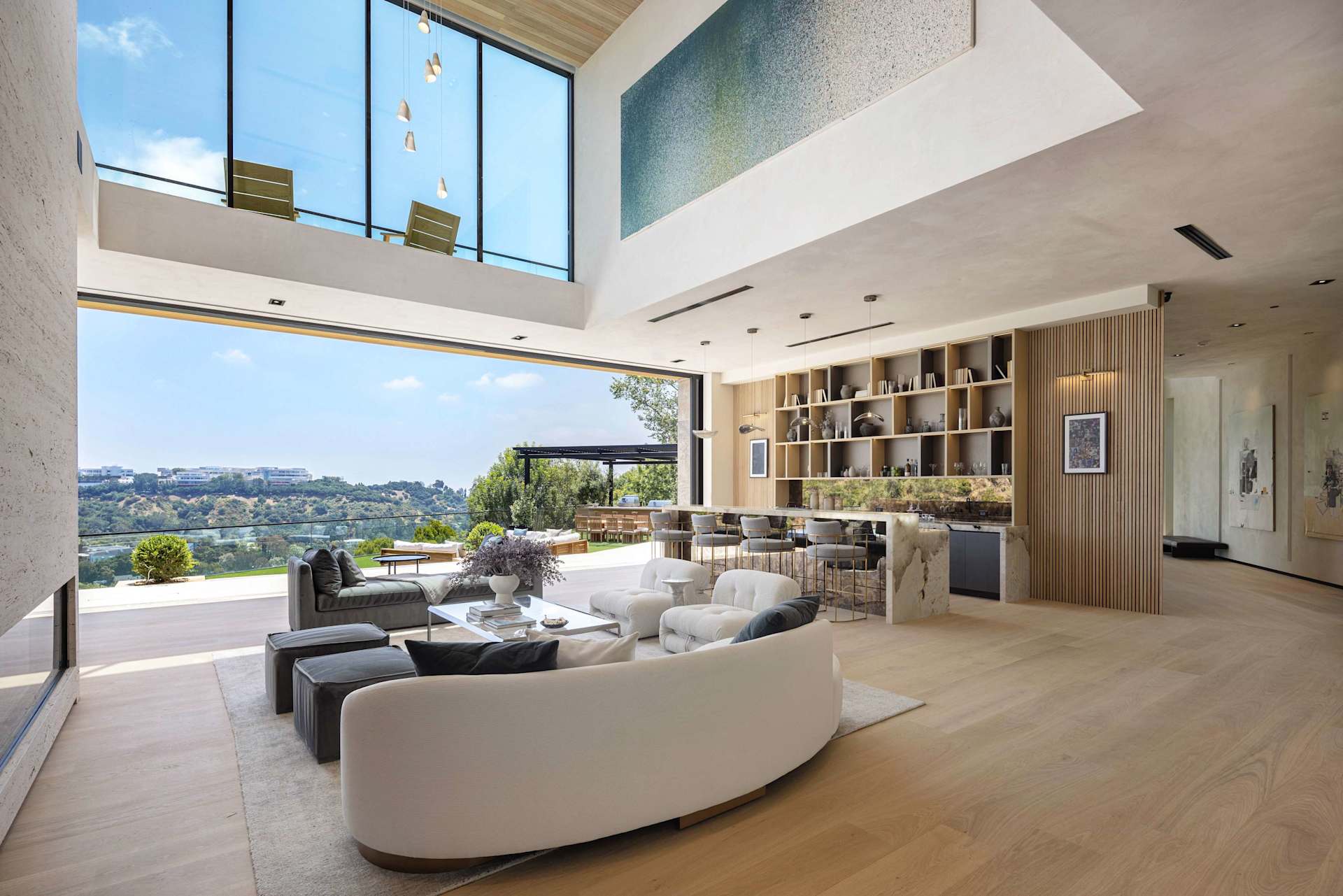 It took two-and-a-half years to obtain all the permits and another three years of construction for Braunstein and his development company Colossal Properties to bring the six-bed, 10-bath home to life and onto the market in Brentwood’s Crestwood Hills neighborhood. The enclave is known for its Mid-Century homes sitting high above Sunset Boulevard in the Santa Monica Mountains.