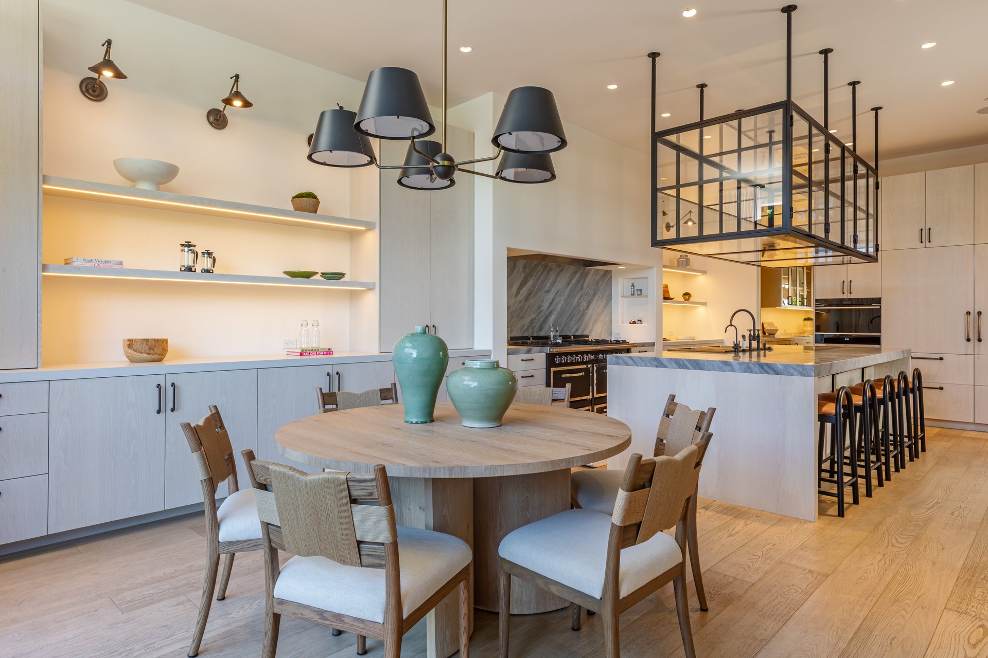 Completed in 2021, the design charts a course through California casual and then deviates in interesting ways. The palette runs warm and tactile. Stone and plank in calm, neutral tones. Generous panes of glass disappears, allowing the interior to spill outdoors without fuss.