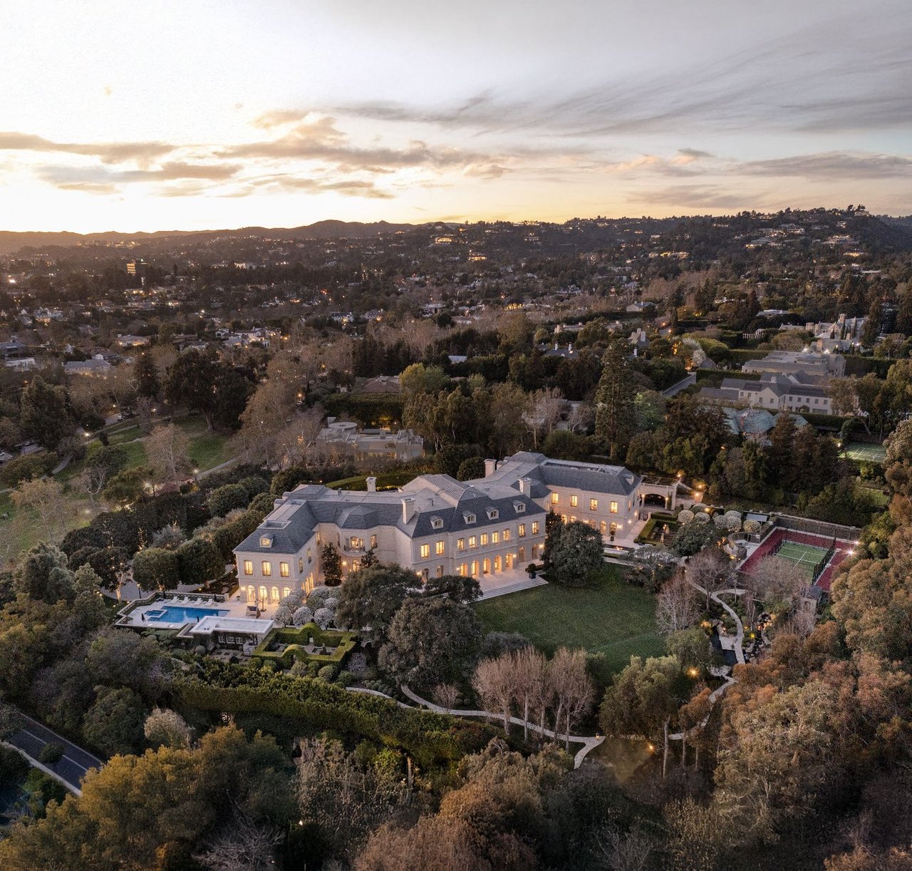 The roughly 6-acre compound is being divided into two sections and sold separately. The bigger of the two parcels—a roughly 4-acre lot that includes the main house—was sold to David Zander, a television, commercial and film producer for about $57 million.