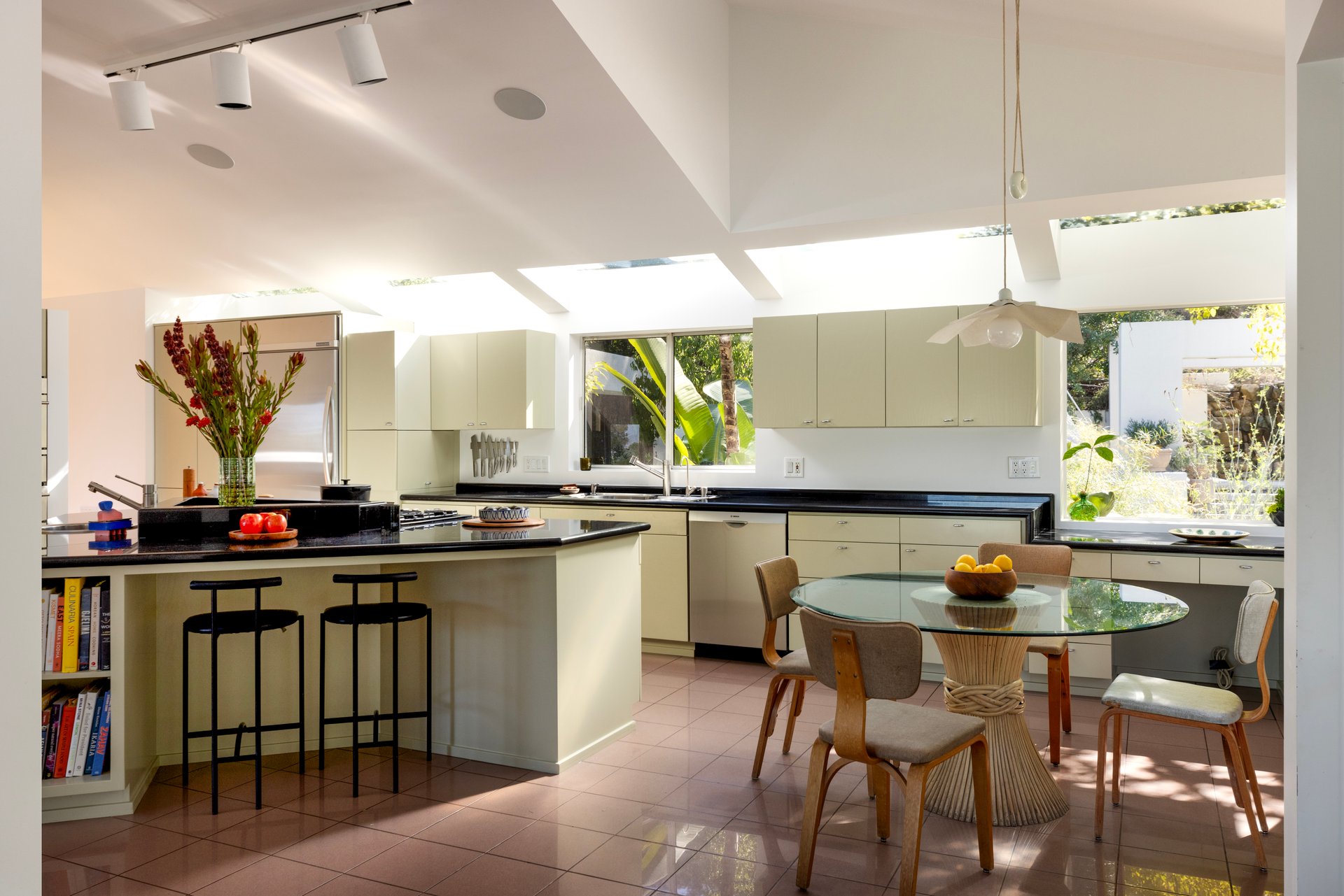 Around four decades ago, long after he had graduated from the USC School of Architecture in the 1960s and embarked upon a second career as a furniture designer for the family business—his famed woven wicker Lotus Chair is on permanent display at the Los Angeles County Museum of Art—Miller Fong created this home in the hilly Silver Lake neighborhood on the Eastside of L.A., framing stunning views of the Silver Lake Reservoir and San Gabriel Mountains beyond from its lofty perch.