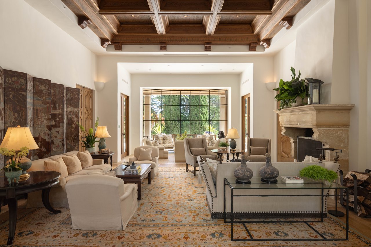 3.5 acres completely flat makes this one of the most important estates in Los Angeles. Mallorcan Villa designed by renowned architect Bob Ray Offenhauser and built by Peter McCoy Construction. Timeless and Elegant, seamless blend between interior and exterior spaces. The Villa is in pristine condition with exquisite detail, extensive use of imported stone and exceptional steel windows/doors by Architectural Iron Works. Soaring 20ft coffered ceilings in the living room. 2-story dining room and library are perfect backdrop for grand entertaining. Indoor-outdoor pavilion/bar overlooks the infinity edge pool and pool cabana. Primary suite is a world apart with views over vast lawns, reminiscent of Montecito. Double baths with individual pocket gardens. Additionally, there is a large guest suite, 4 generous family bedrooms each with homework areas, a junior guest room and staff bedroom. Totaling 8 bedrooms. Additional features of the estate include: gourmet kitchen and catering kitchen, large gym, 1,200 bottle wine cellar, game room, oversized 4-car garage, and a service building with separate entrance. Gardens designed by Todd Bennitt. The grounds feature: rolling meadows, olive allee, formal rose gardens, courtyards, water features, tennis court and sports court. All in complete privacy. A work of art to be cherished and celebrated. Shown only to prequalified buyers.