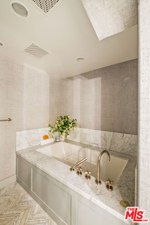 An exquisite Mediterranean-inspired home perched atop the Hollywood Hills featuring a stucco exterior accented by arched windows, wrought iron, and bougainvillea balconies reminiscent of classic European villas, just minutes from Runyon Canyon. Enter through the dual driveway past manicured hedges along a cobblestone path that leads you to a charming fountain, setting the tone of grandeur experienced throughout. The multiple levels are anchored by an open floor plan, all connected by a private elevator. The central point of the home is on the top floor, showcasing a thoughtfully designed gourmet kitchen outfitted with Calacatta marble countertops and a coordinated backsplash, a farmhouse sink, and professional-grade Viking appliances. Natural light floods the living area through expansive windows and a separate seating area complete with a custom marble fireplace. The adjoining dining area opens to a patio that extends the living space outdoors, designed with multiple seating areas, lantern lights, and a built-in water fountain delivering an enchanting atmosphere for gatherings. The primary suite includes a custom walk-in closet and ensuite bathroom with dual vanities, a soaking tub, and a steam shower adorned with intricate marble detailing. Each additional bedroom has ensuite bathrooms, finished with bespoke tilework and curated fixtures that maintain the home's elevated aesthetic. The multi-level layout allows for entire floors to be dedicated to guests with access to private balconies, providing accessible outdoor space integrated into every floor. On the ground floor, a versatile room provides flexibility ideal for an office, library, or den. Nestled north of Hollywood Blvd, this Mediterranean gem offers a secluded setting just minutes from the vibrant Sunset Blvd, with ample dining and entertainment options.