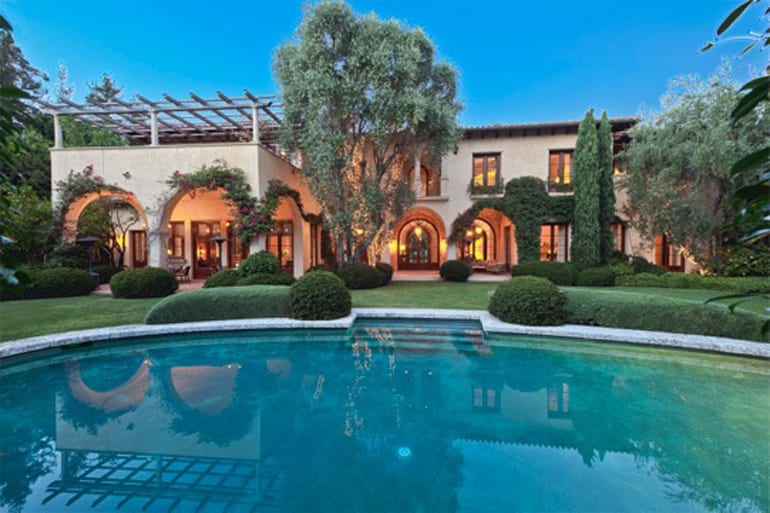 The wine cellar acts to center the surrounding theatre, lounge, and billiards rooms which are ideal for entertaining or enjoying a relaxing retreat. There are plenty of alcoves and places to nest with a good book throughout the property yet the spacious terrace off the main gallery stands out as especially inviting. Acting as an additional living room, this gathering space is casual with plenty of sunshine overlooking the elegant oval-shaped pool and cabana. Your senses may guide you further outside to the picturesque rose garden making The Mapleton Estate truly an Italian “palazzo” reimaged in the heart of L.A.